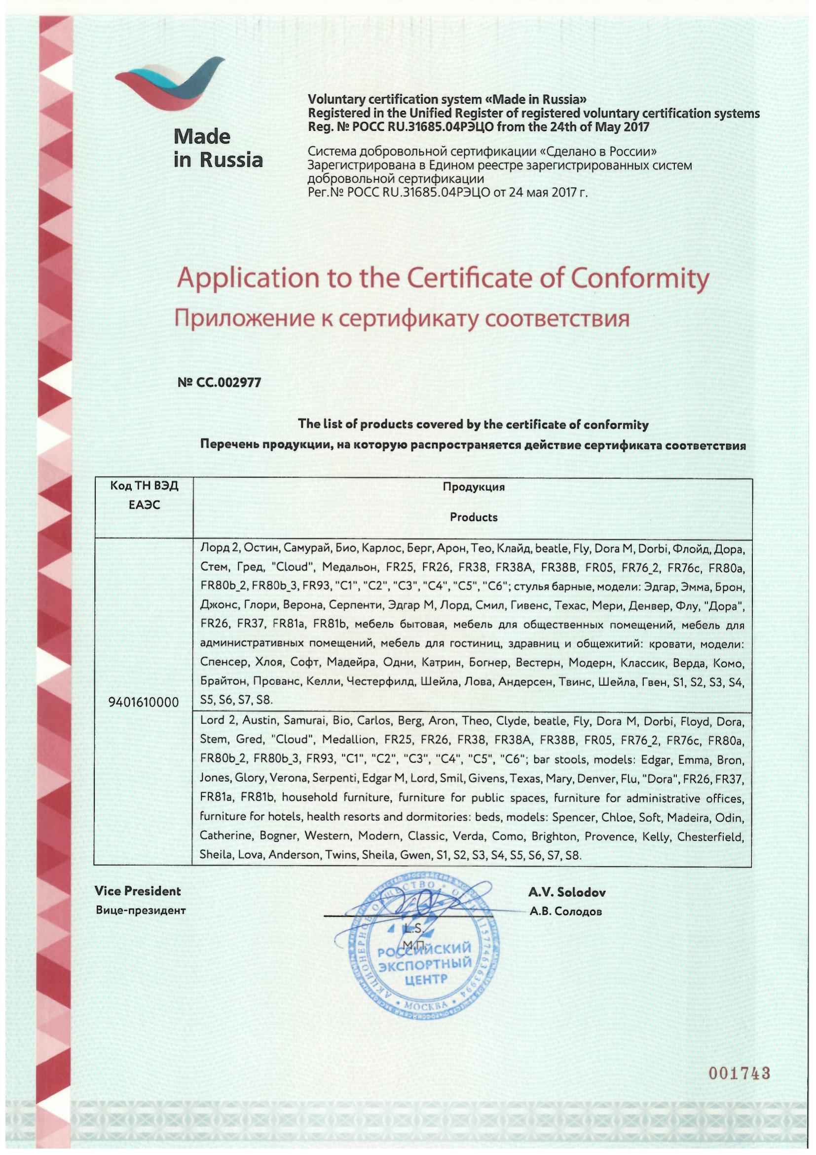 Наша продукция имеет официальный сертификат соответствия «Сделано в России» (Made in Russia) № СС.002977. Этот документ действителен до 14 сентября 2028 года и выдан на основании реальных протоколов лабораторных испытаний. Для наших партнеров-отельеров это означает юридическую безопасность: комплектация объекта мебелью CorsaStyle автоматически закрывает вопросы контролирующих органов по безопасности и происхождению материалов.
